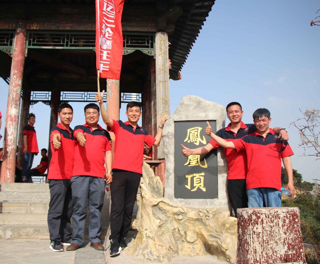 經過4公里公路徒步前行,各個小組陸續到達鳳凰山下,對高大雄偉的山峰展開了全面攻勢。每個小組不離不棄,勇攀高峰,汗水濕透了衣襟,一步一個腳印,一步一個臺階,最終銷售二區第一個成功登頂,其余團隊也不甘示弱陸續到達山巔。在全體成員的共同努力下,十一面大運三輪的旗幟飄揚在鳳凰金鼎之上。