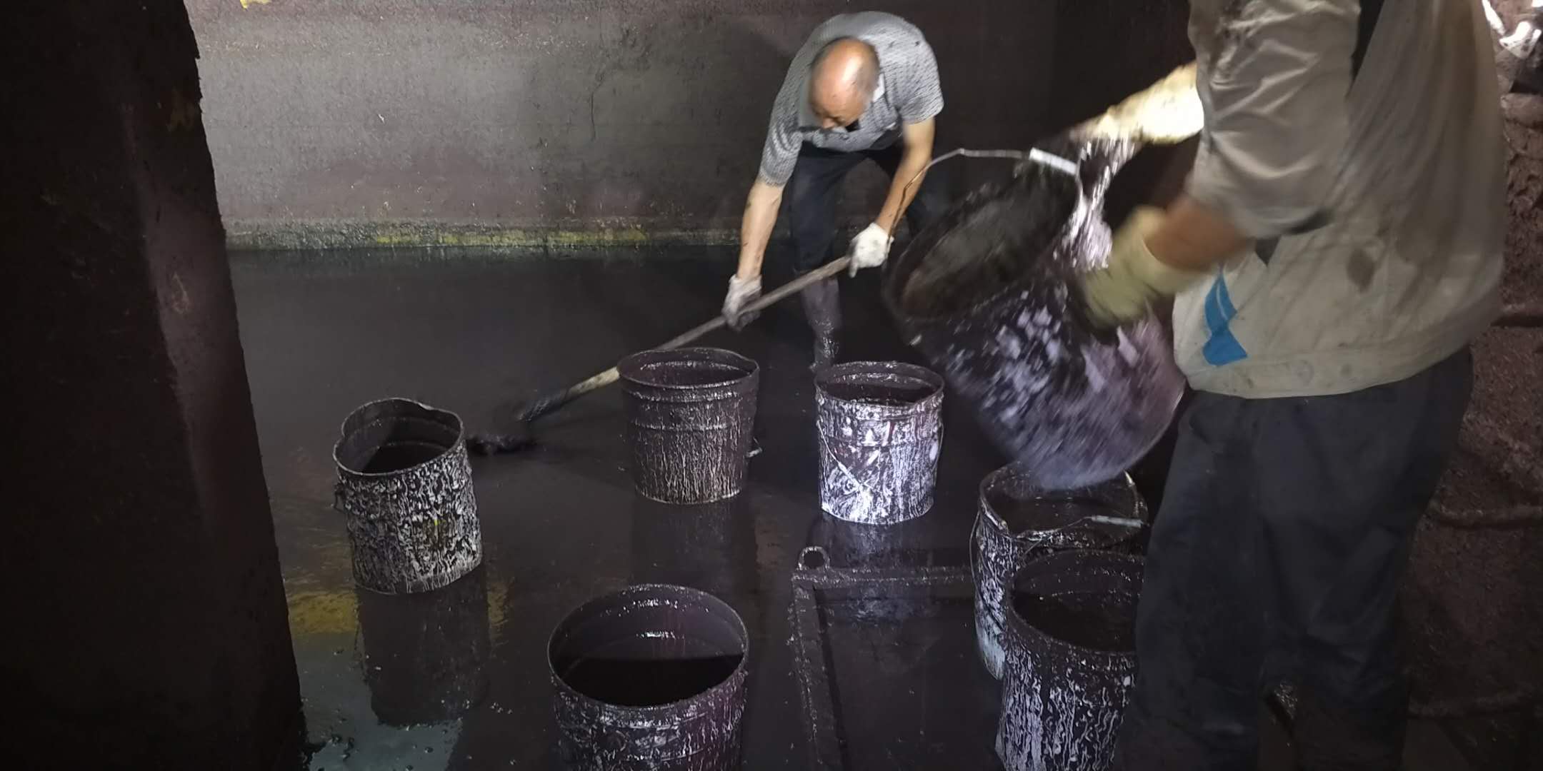(圖2:清淤小隊(duì)用鐵皮桶進(jìn)行淤泥清理)