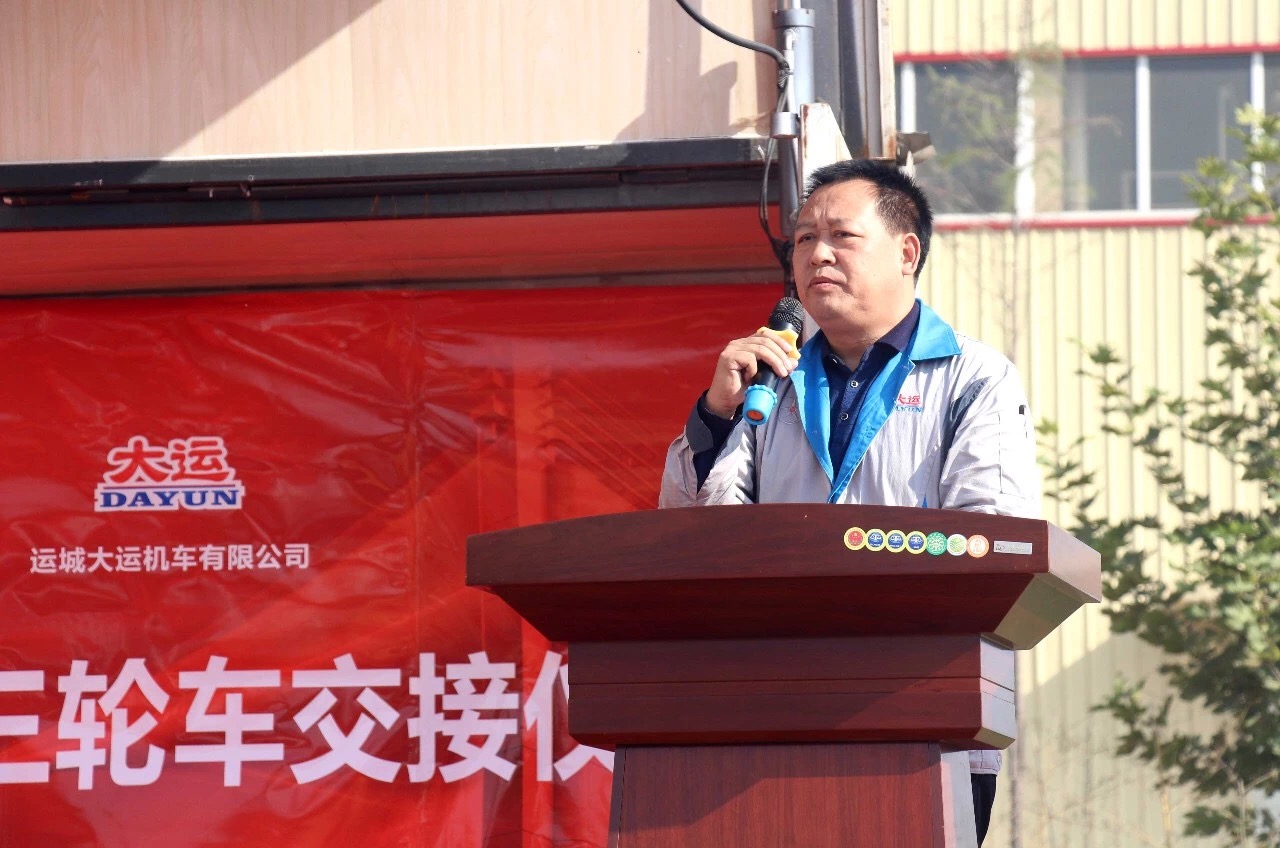 活動開始前,運城市郵政管理局局長、黨組書記董向陽先生作了開幕致辭,他表示郵政快遞行業(yè)是國家重要的社會公用事業(yè),是不可缺少的基礎性行業(yè),在服務大眾便捷百姓、提高人民日益增長的物質(zhì)、文化生活動方面,有著深刻的內(nèi)涵和意義。同時,董局長就快遞行業(yè)當下的發(fā)展狀況、未來的發(fā)展趨勢做了簡要闡述,對本次快遞車的成功下線交付表示祝賀,對行業(yè)內(nèi)相互融合,相互促進,共同發(fā)展的良好局面提出了高度贊賞。