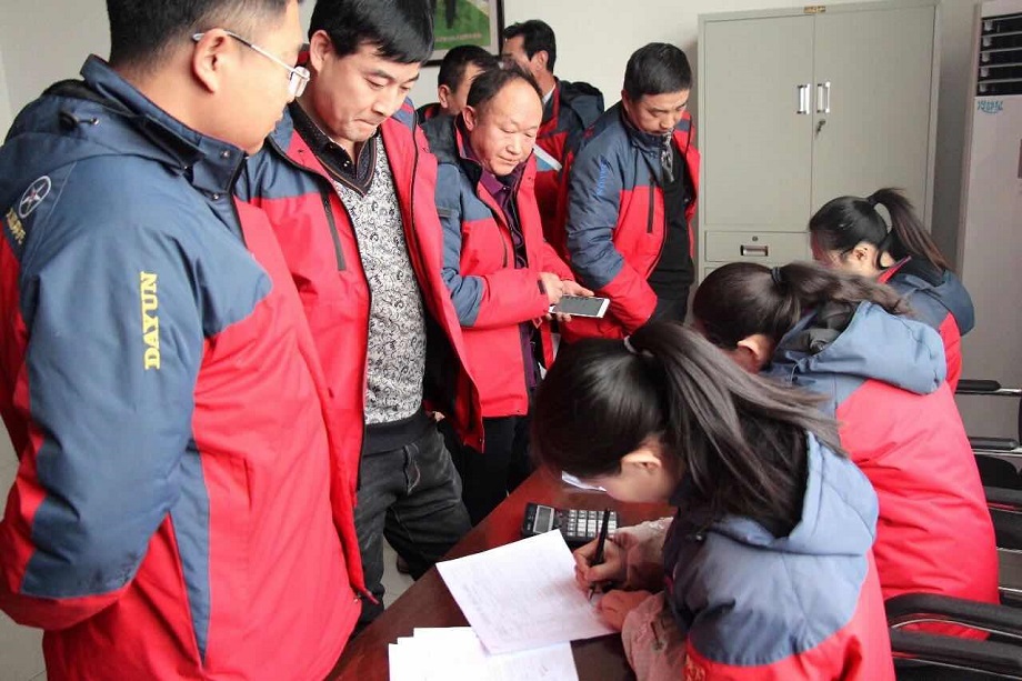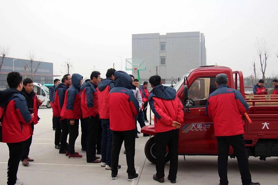 圖:陜北區(qū)域經(jīng)銷商朋友對大運三輪新產(chǎn)品進行評審