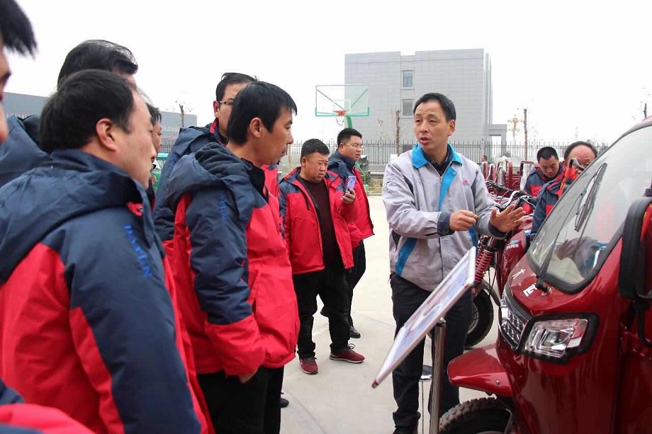 隨后,各經(jīng)銷商朋在公司二樓會議室共同參與了“大運三輪陜北區(qū)域商務(wù)會議”。會議首先,運城大運機車有限公司總經(jīng)理周總分別從公司大平臺的綜合實力、2019年對銷售市場的保障措施以及對陜北區(qū)域的重視程度等方面向與會商家做了講解,同時周總對陜西創(chuàng)天商貿(mào)有限公司“早規(guī)劃、早布局、早行動”的工作思路表示認(rèn)可和支持。其次,技術(shù)中心油車研發(fā)處經(jīng)理張現(xiàn)偉、電車研發(fā)處經(jīng)理符朝輝分別向與會商家講解了公司2019年的產(chǎn)品規(guī)劃及車輛公告情況,并表示,2019年將為市場提供符合國家公告的、具有市場競爭力的產(chǎn)品。